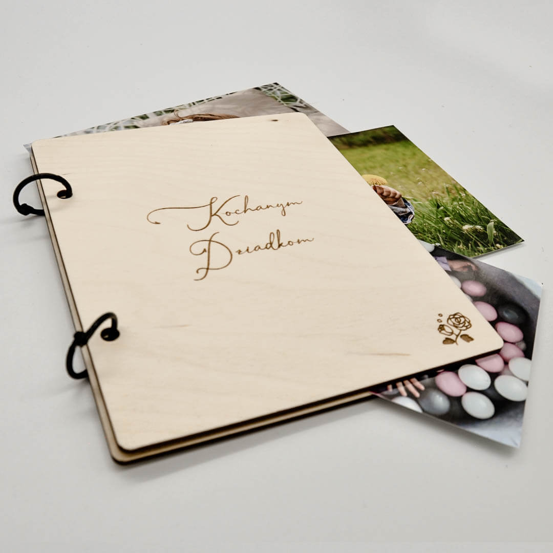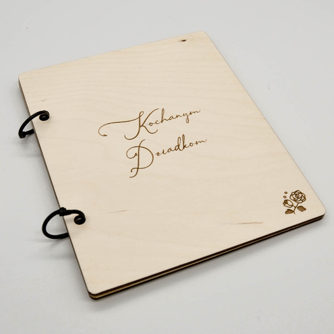 Drewniany album na zdjęcia dla babci i dziadka to popularny wybór wśród personalizowanych prezentów na dzień babci i dziadka. Nasz album składa się z drewnianych okładek z napisem "Kochanym Dziadkom", opatrzone symbolem róży z przodu i z tyłu oraz metalowych kółek, w które bez problemu wepniesz kolejne zdjęcia. Dodatkowo do zestawy dołączamy 10 szt. koszulek, w które zmieścisz do 20 zdjęć kochających wnuków.