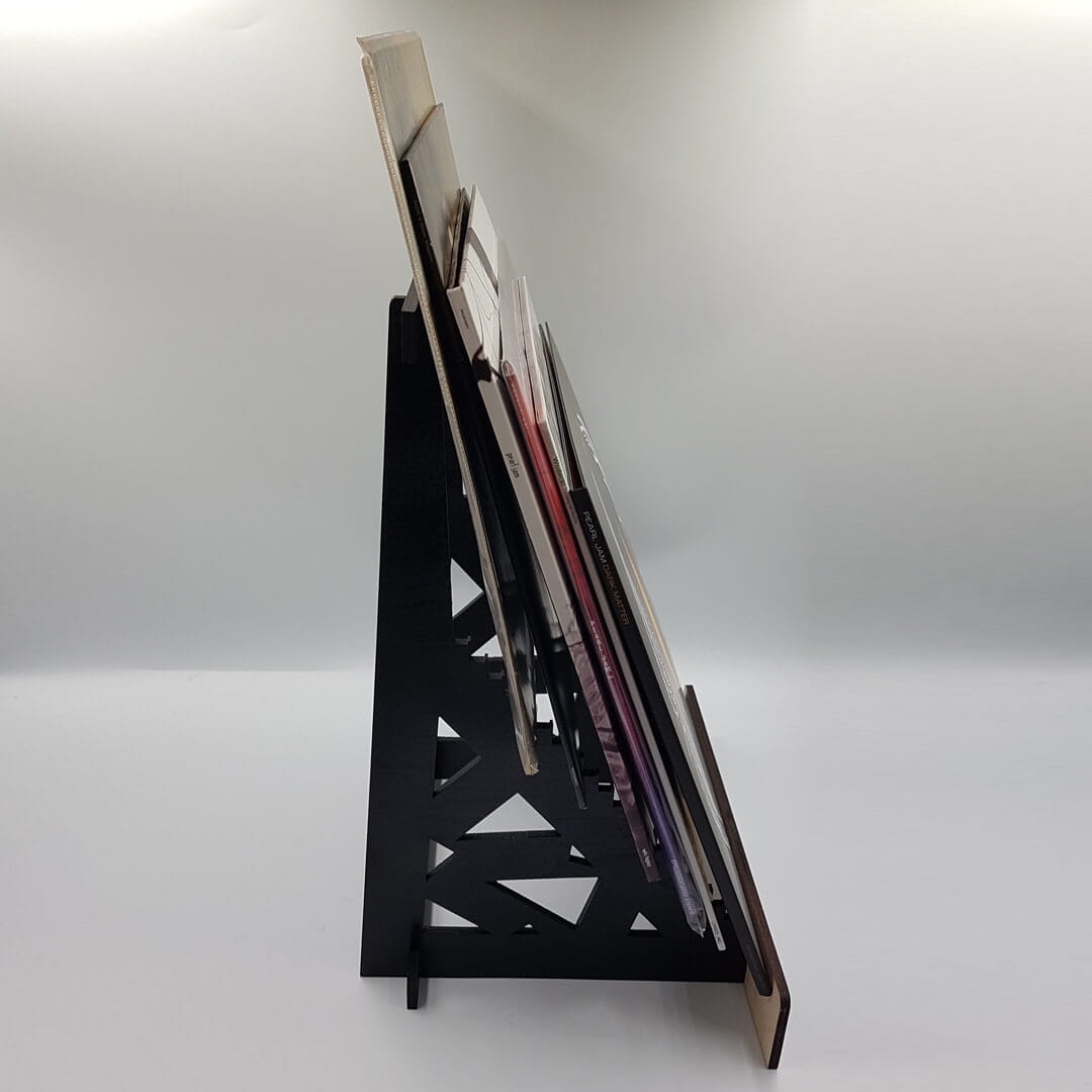 - Funkcjonalność i styl: Dzięki temu stojakowi na winyle możesz nie tylko przechowywać swoje płyty winylowe w uporządkowany sposób, ale również uczynić z nich ozdobę każdego pomieszczenia.