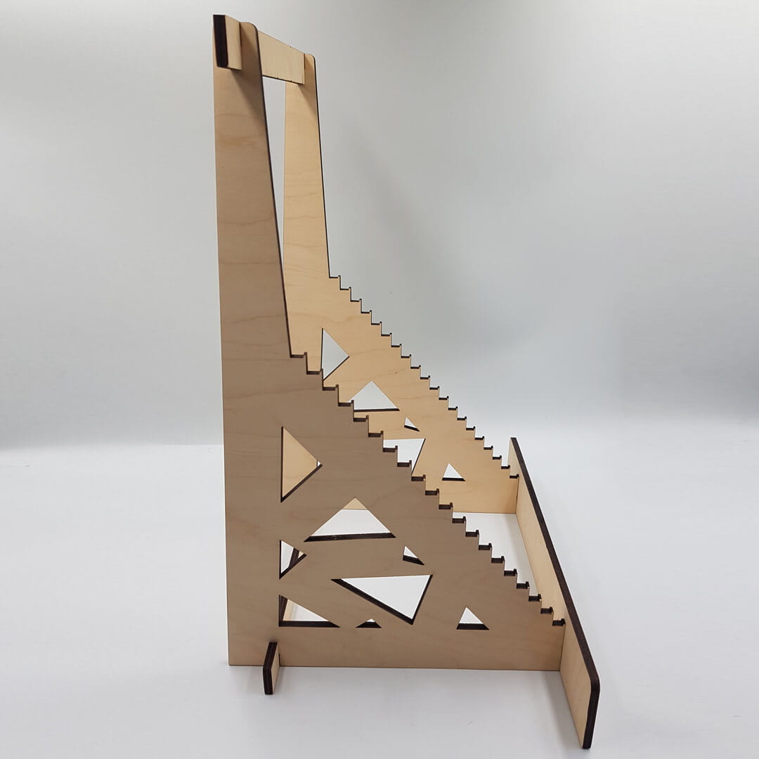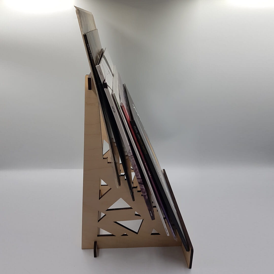 - Materiał i trwałość: Stojak na winyle wykonano z wysokiej jakości sklejki brzozowej. Precyzyjne wykończenie sprawia, że idealnie nadaje się do codziennego użytku.