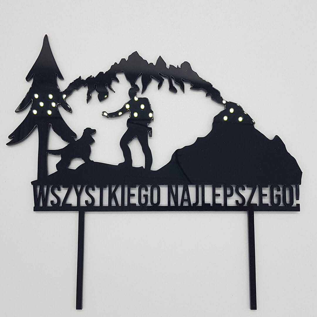 Jeśli góry to Wasz drugi dom lub macie przyjaciela, który często zakłada raki lub wspina się po ścianach skalnych i chcielibyście sprawić jemu lub sobie przyjemność, to zestaw topperów z motywem gór niewątpliwie załatwi sprawę. Dwa toppery, jeden górny z krajobrazem górskim o dużej szerokości 25cm oraz drugi, boczny z wizerunkiem wspinacza trzymającego się urwiska.