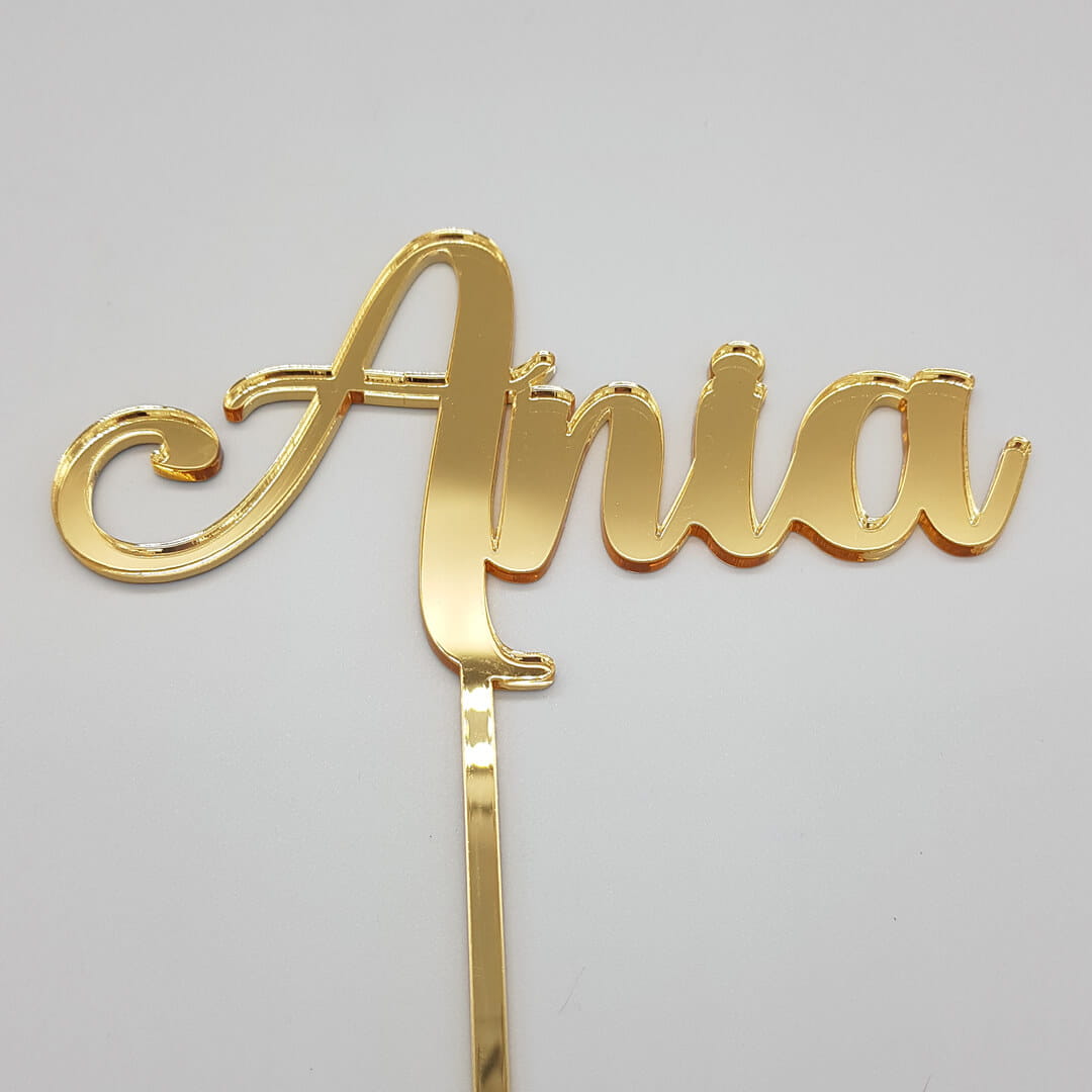 Złoty topper na tort z imieniem – personalizowana dekoracja tortu