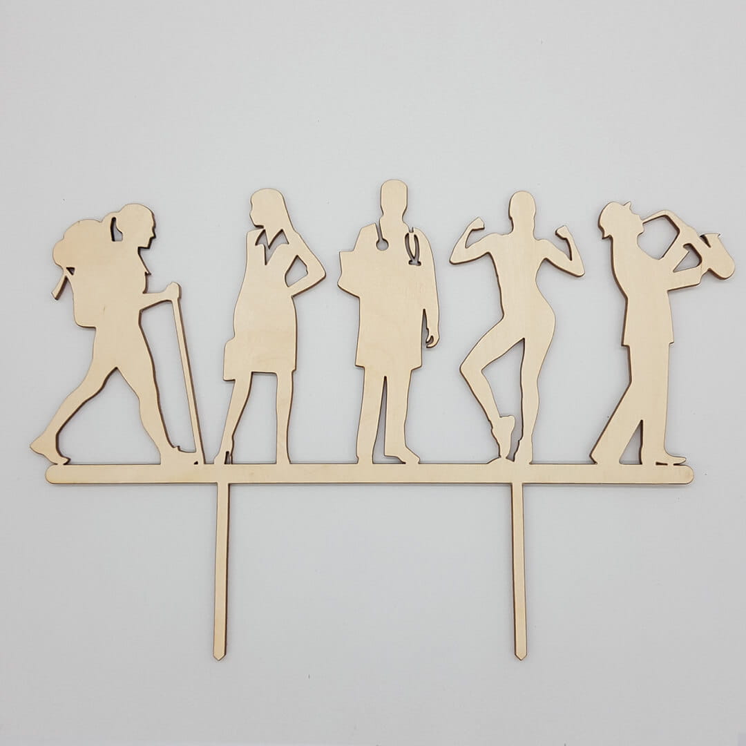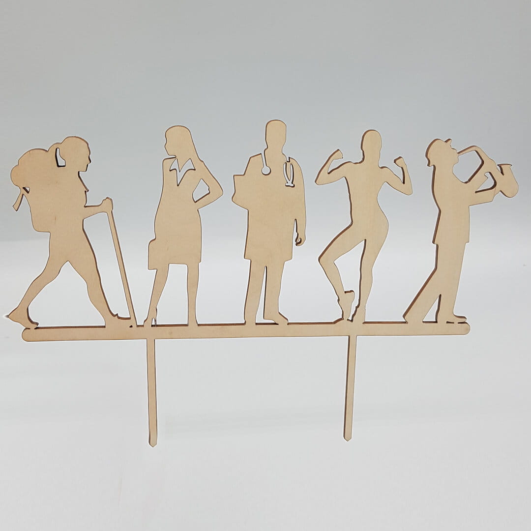 Drewniany topper z sylwetkami postaci z różnych zawodów i profesji to idealny topper na imprezę z przyjaciółmi, gdzie można umieścić zabawne zawody związane z reprezentowanymi profesjami. To kreatywny sposób na podkreślenie różnorodności umiejętności i talentów w towarzystwie, tworząc unikalną i zabawną atmosferę podczas imprezy.