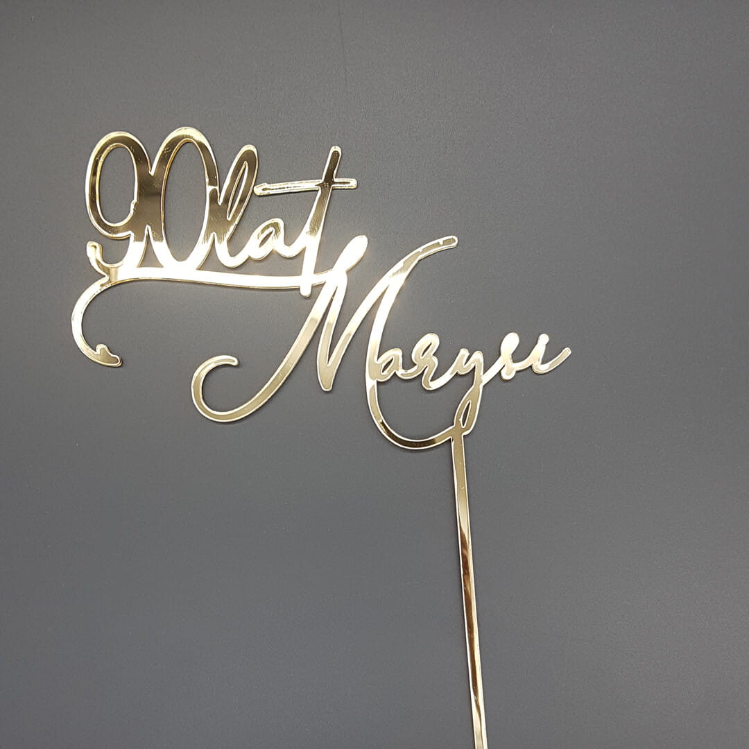 Niezależnie od rodzaju uroczystości jaka się zbliża, możecie zaplanować wcześniej jej charakter i klimat. Złoty topper na tort na rocznicę czy jubileusz może wyglądać tak jak tego będziecie chcieli. Specjalnie dla Was zaprojektujemy indywidualny wygląd toppera oraz zamieścimy dowolny napis związany z tematem obchodzonego święta.